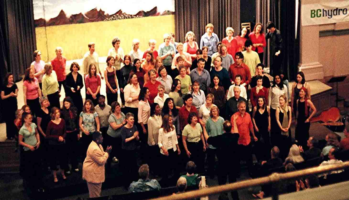 The choir explored roots music, sampling from traditions through the ages and from around the world: songs of praise and thanks, chants and hollers, gospels, sea chanteys, laments, celebrations and protest songs. Each spring, a concert was held to support a local charity or to raise funds for arts programming at the school, with a variety of guest soloists, including Victoria’s own Colleen Eccleston.