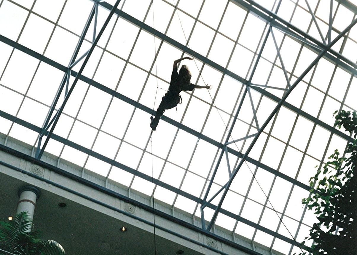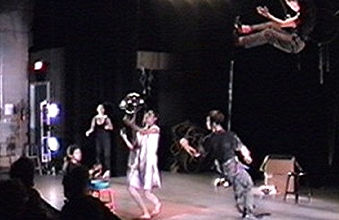 Artists from a variety of disciplines (theatre, music, dance) and representing the cultural mosaic of Winnipeg in the 1990’s (1st Nation, Afro-Canadian, Phillipino, European) were brought together to build a new vocabulary of performance and image-making, exploring the potential for re-creating the astronaut’s experience in a black box theatre.