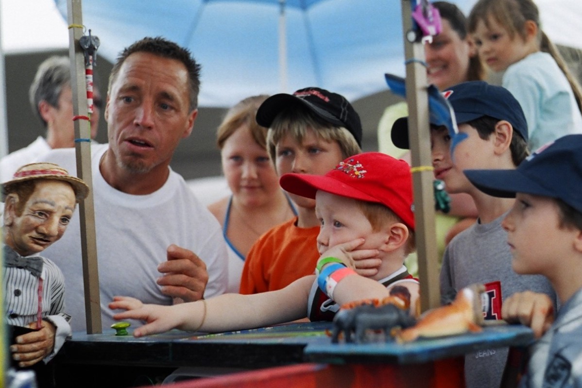 Originally created as a street performance and installation, Quinn Harley’s Dream Factory is part carnival midway act, part game show, all hosted by a puppet named Quinn Harley–tiny master of the midway and ancient trickster clown–where ‘everyone wins a prize’ and a clown is created every minute.